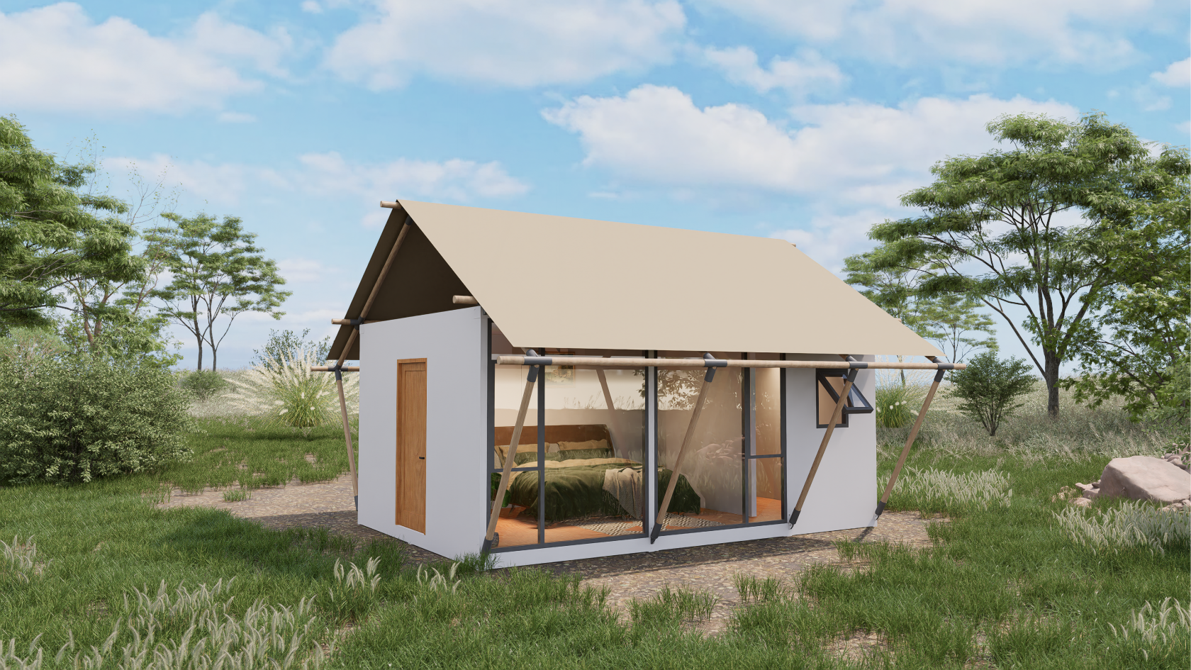 韩式帐篷通常采用流畅的曲线造型与柔和的色彩搭配,营造出温馨而时尚的氛围。其标志性特征包括陡峭的屋顶坡度、宽大的门廊以及精致的细节处理,如缝线工艺和装饰性配件。设计师巧妙运用素雅色调(如米白、浅灰或低饱和度的莫兰迪色系),使产品既能融入自然环境,又能提升营地的整体美感。部分高端款式还会加入传统韩服纹样刺绣元素,展现文化韵味与现代审美的结合。这种兼具东方韵味与西方功能性的设计语言,让韩式帐篷在众多户外装备中独树一帜。